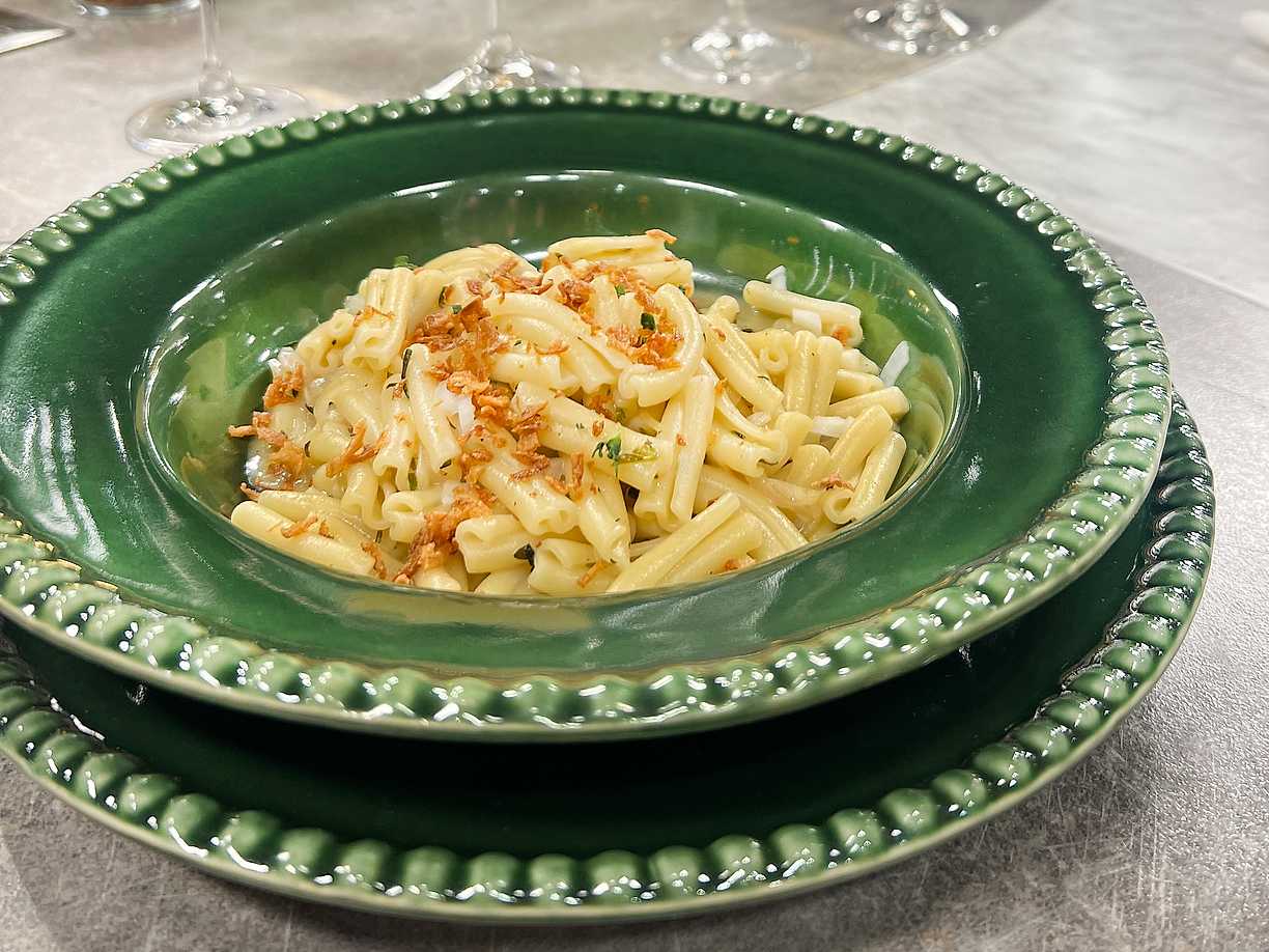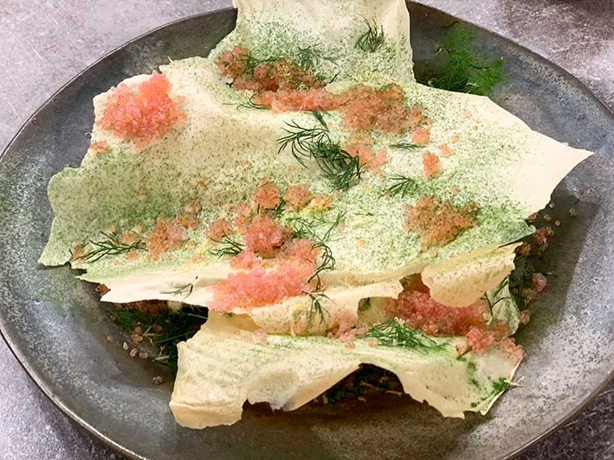 Torskrygg med västerbottensost, rödvin och syrad lök