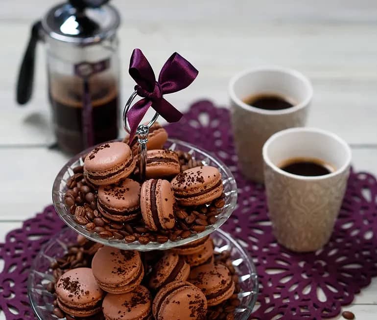 Macaron med kaffe och choklad