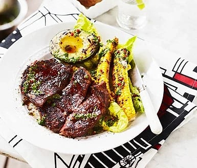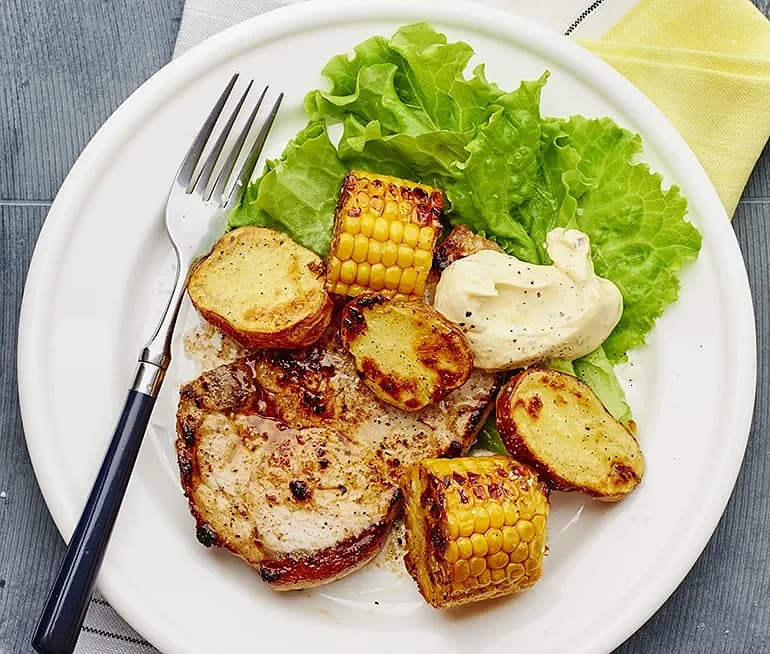 Chipotleglacerad kotlett med majs- och tomatsallad