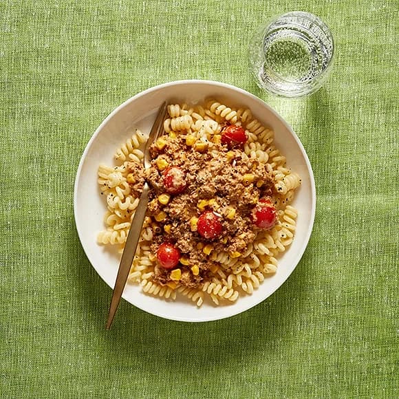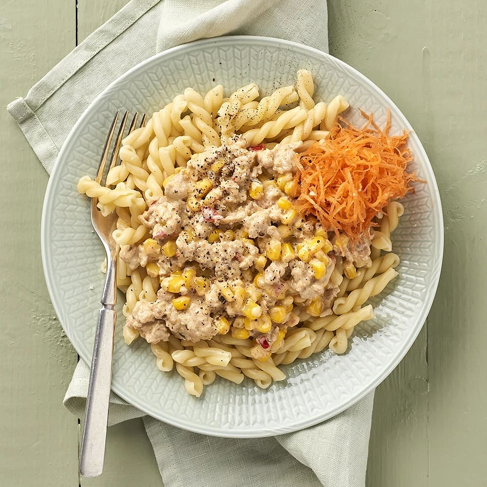 Krämig pasta med tonfisk och majs