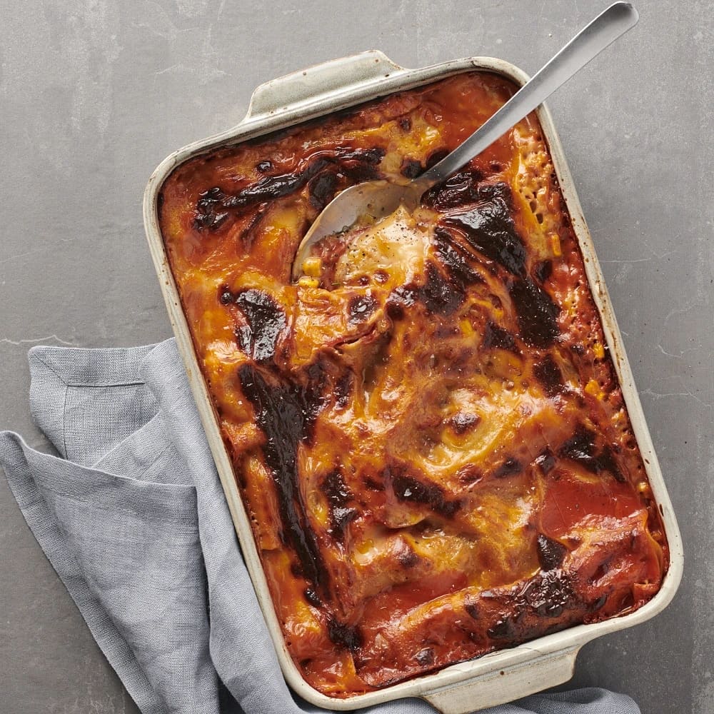 Lasagne med majs och tomat