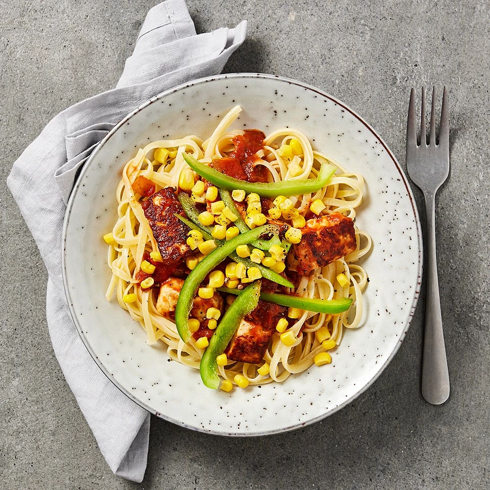 Halloumipasta med majs