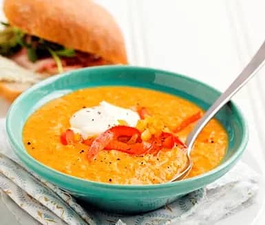 Rostad majs- och sötpotatissoppa