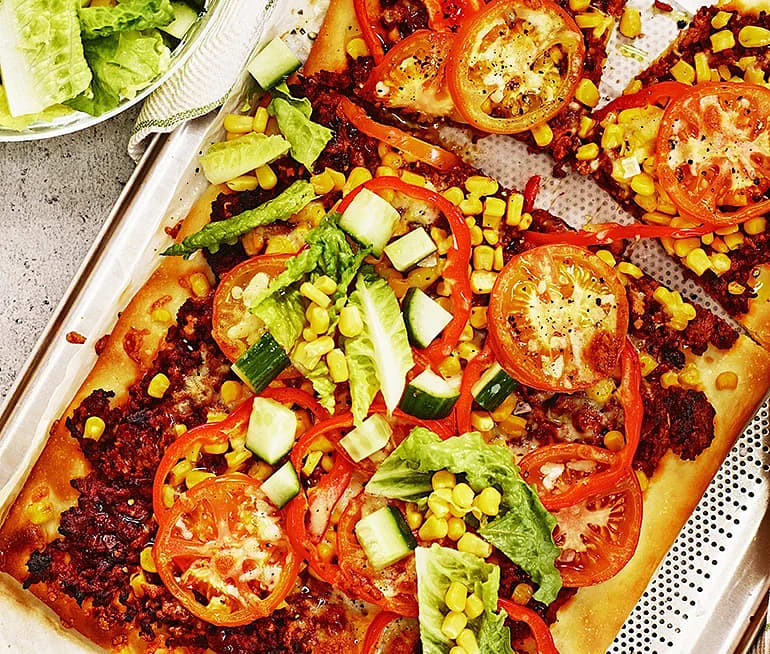 Tacopizza med köttfärs och majs