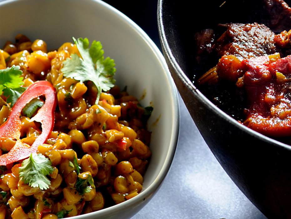 Köttfärscurry med majs och rostad lök