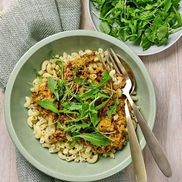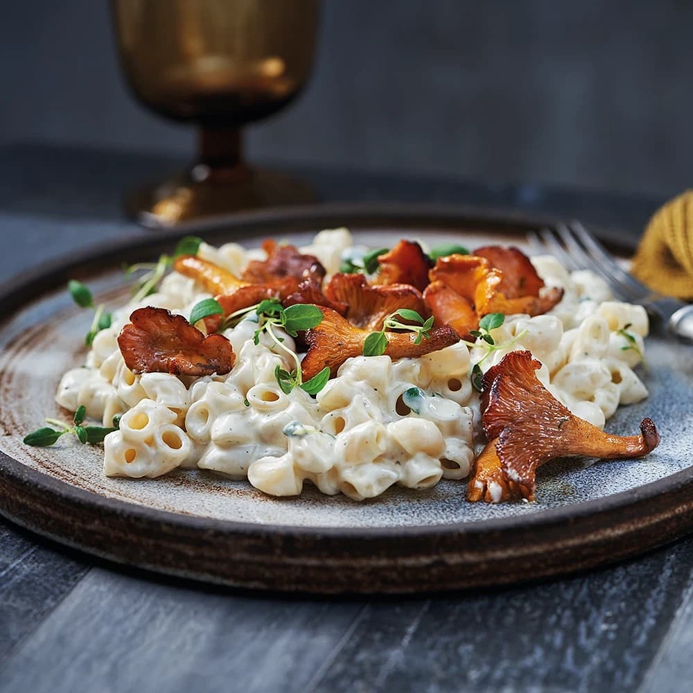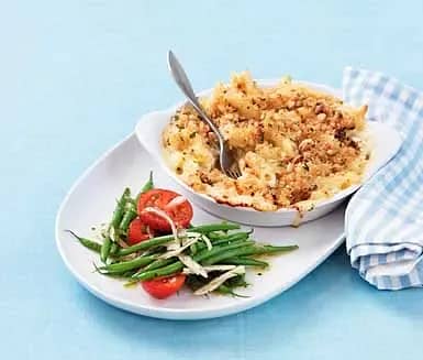Macaroni n'cheese med pankocrunch och pinjenötter