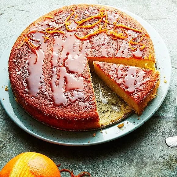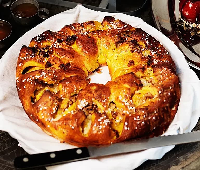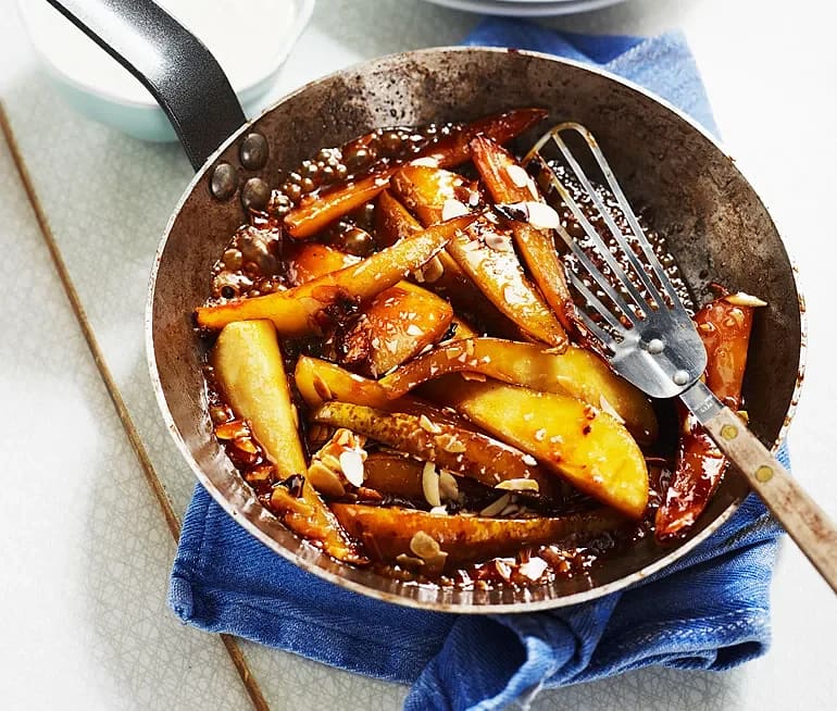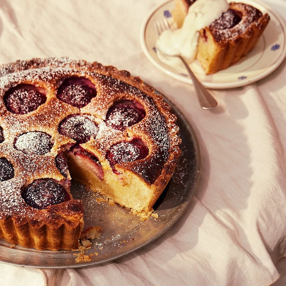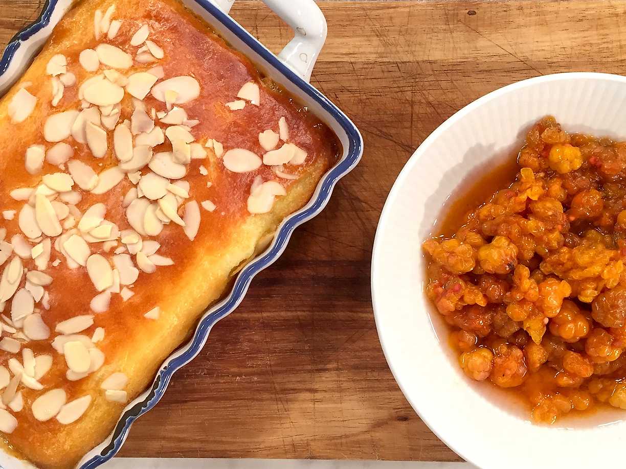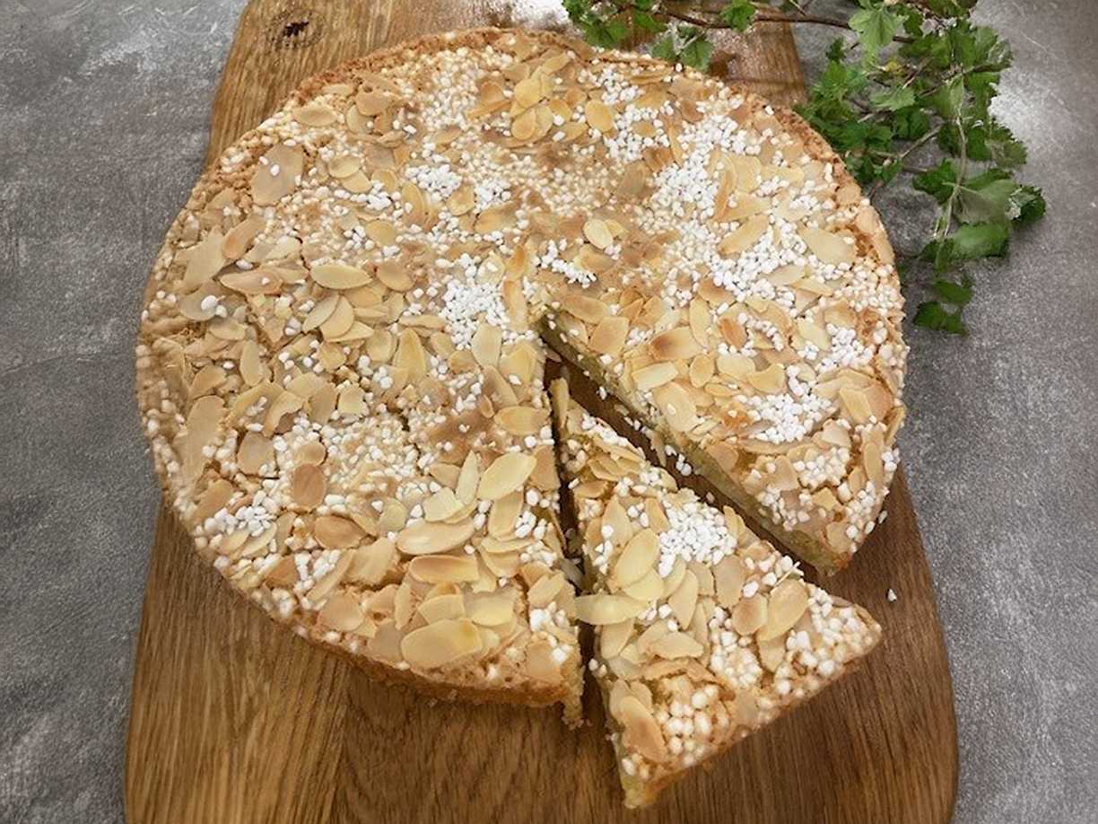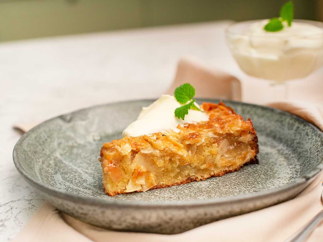 Mandel- och äppelkaka med hemgjord vaniljsås