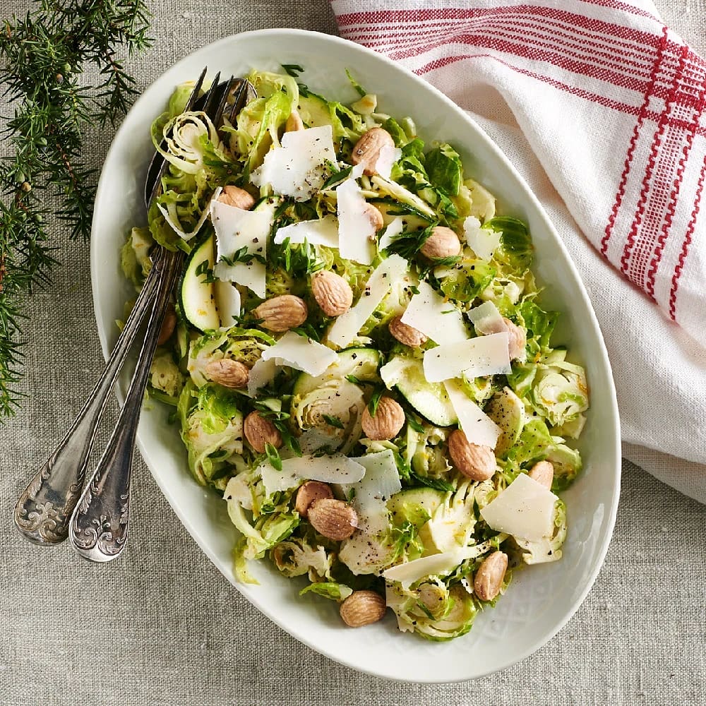 Brysselkålssallad med apelsin, brynt smör och mandel