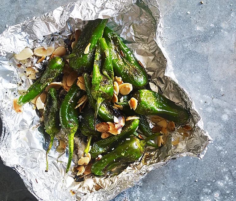 Grillad sparris med hyvlad parmesan, mandel och citron