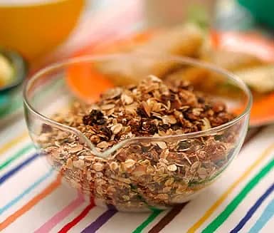 Fruktsallad med yoghurt, honung, granatäpple och mandel