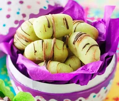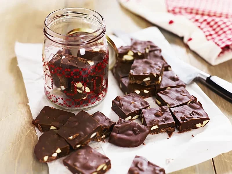 Chokladtryffel med med ingefära, granatäpple och mandel