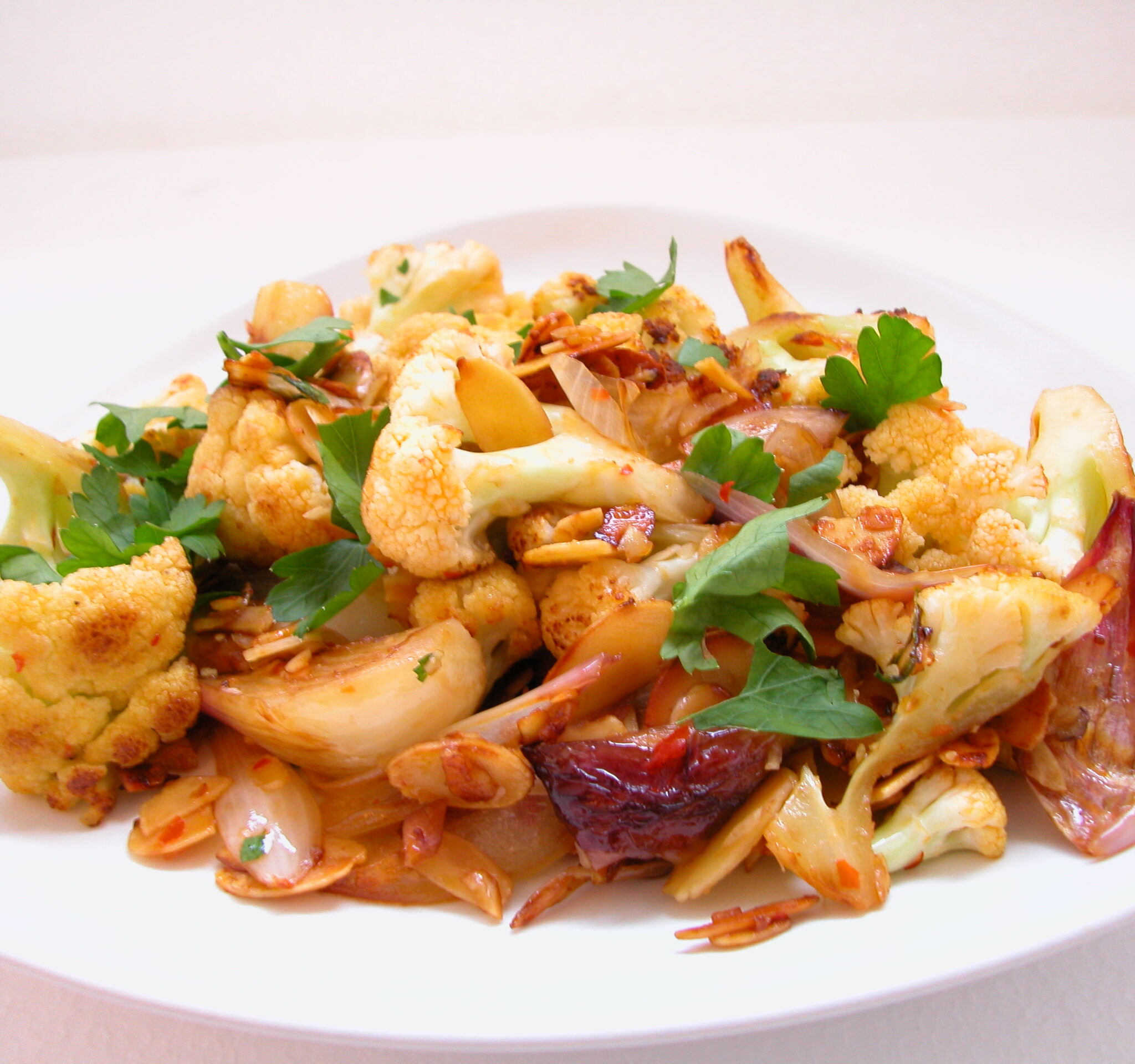 Kyckling och blomkålspanna med mandel och sambal oelek