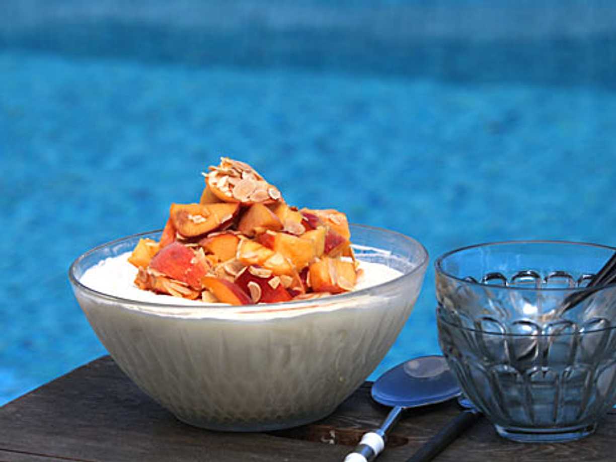Yoghurt med saffran, kryddkokta björnbär och mandel