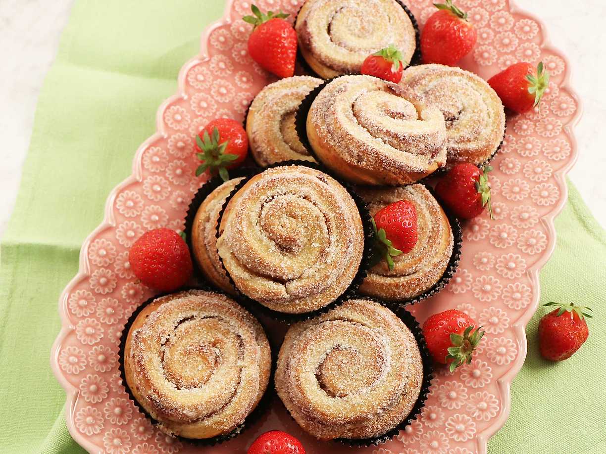 Karlsbaderbullar med jordgubb, mandel och vanilj