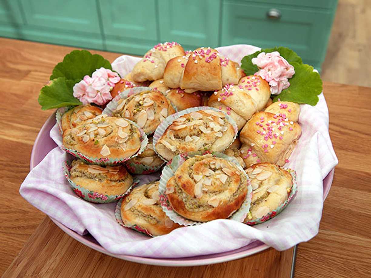 Mandel- och äppelgifflar samt Pistage- och mandelbullar