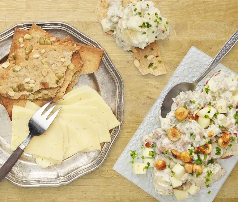 Sillsallad med äpple, mandelpotatis, gräslök och hasselnötter