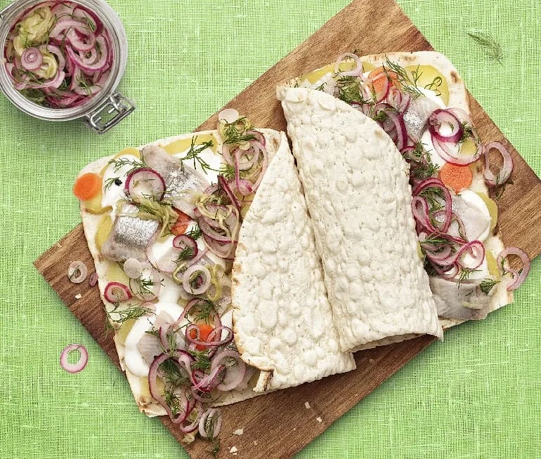 Sillklämma med mandelpotatis och citronpicklad gurka