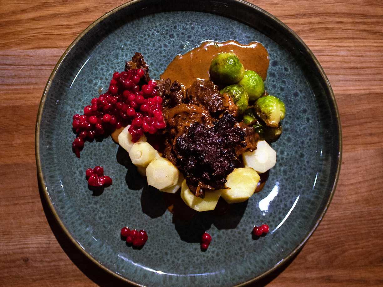 Älgskav med mandelpotatis, palsternacka och rårörda lingon