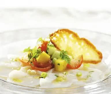Pilgrimscarpaccio med mangosalsa