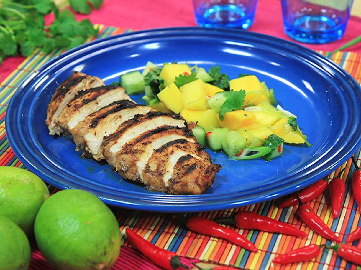 Jerk chicken med mangosalsa