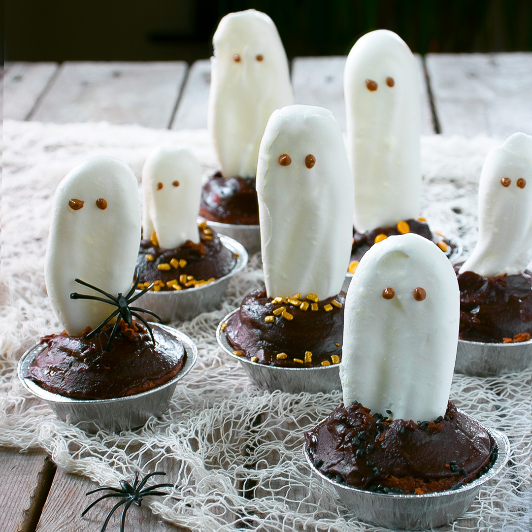 Halloweenmuffins med marängspöken