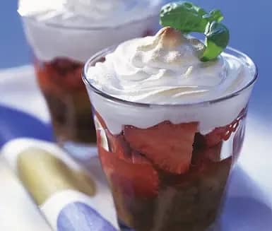 Yoghurt och jordgubbar med marängtopp