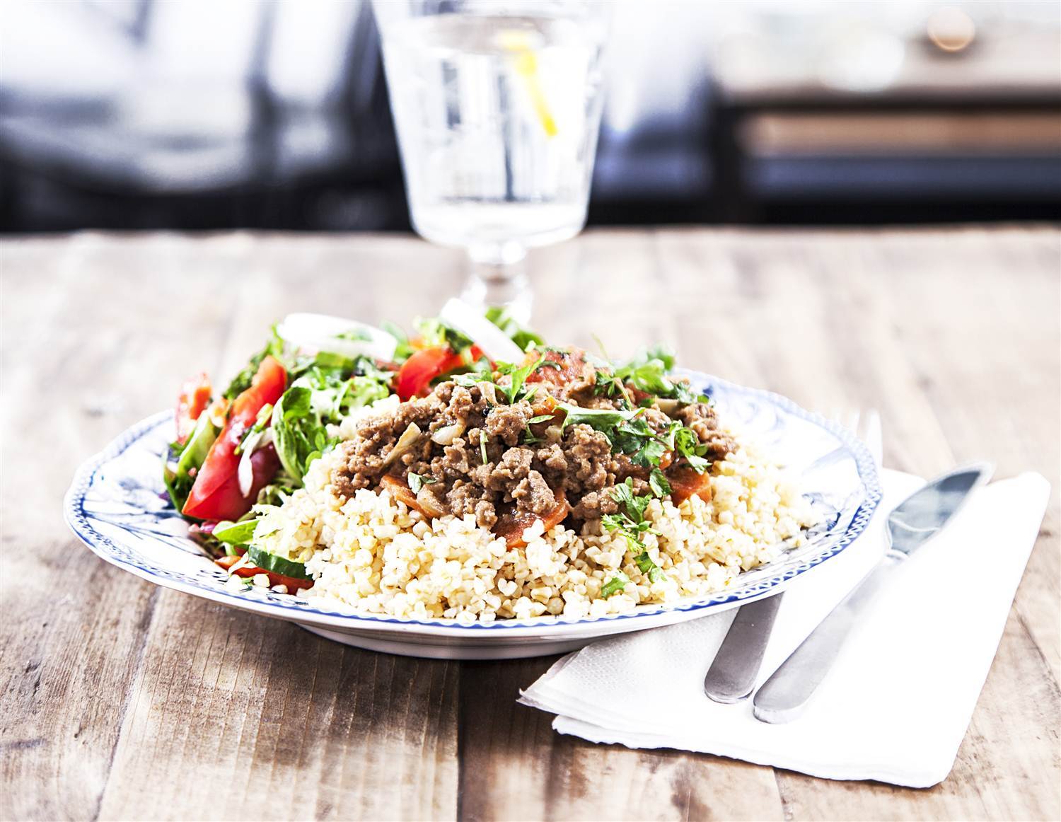 Pannbiff tikka masala med limegurka