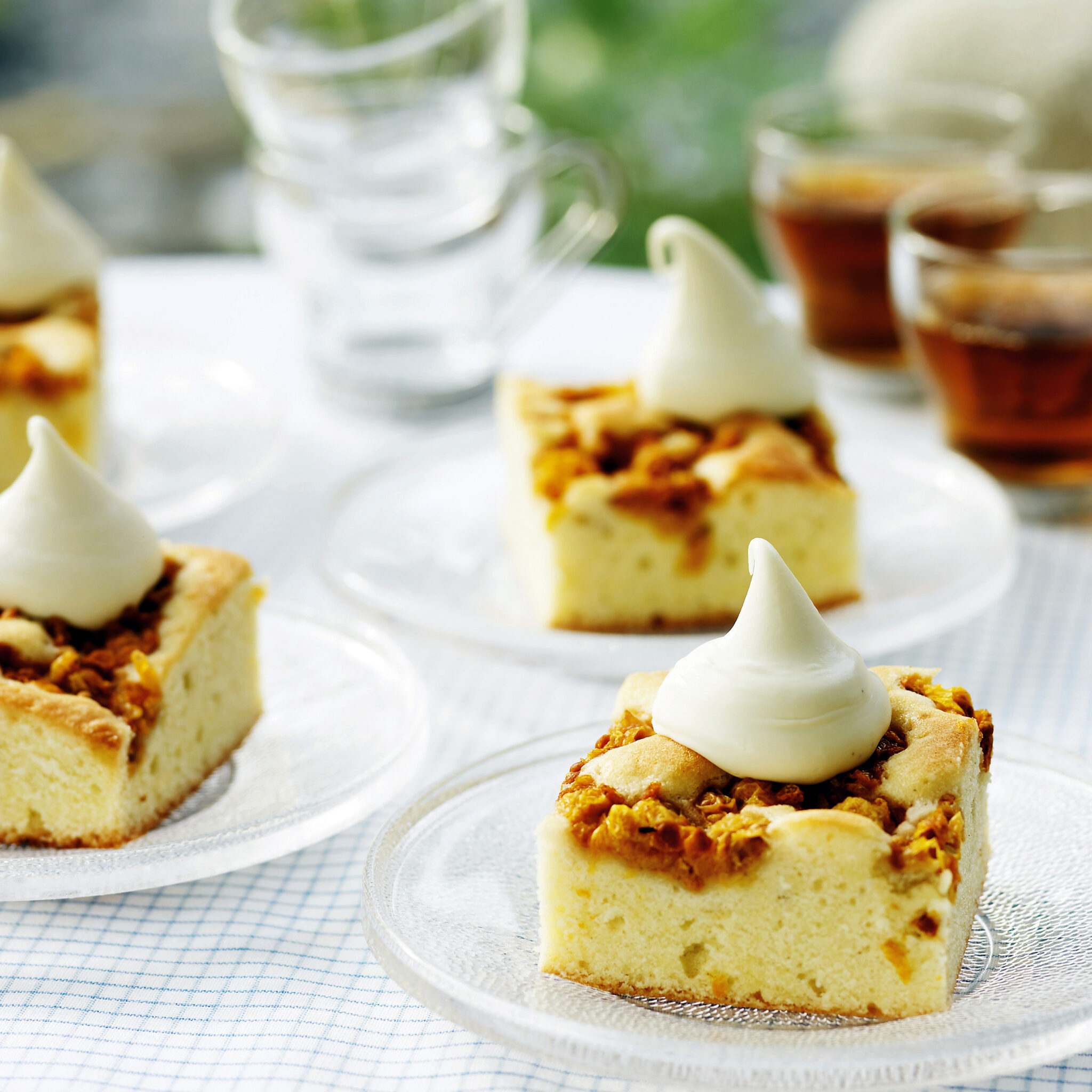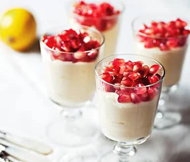 Proseccoinkokt nektarin med seg pistagemaräng, citronkräm, mynta och syrlig mascarpone