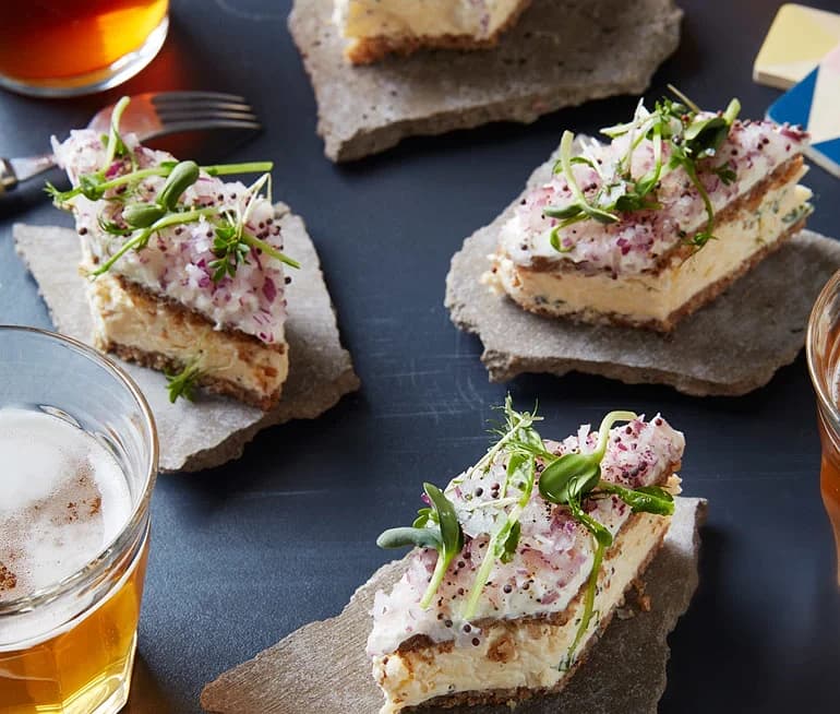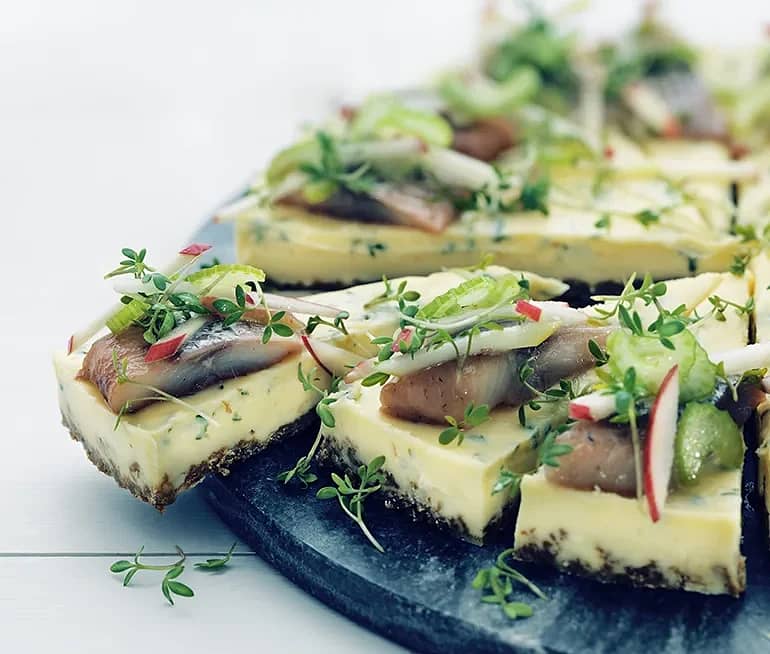 Matjessill med cheddaräggröra, kaviarcrème och brynt smör
