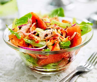 Sallad med kräftstjärtar, lime och melon