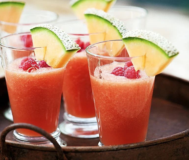 Sommardrink med melon och jordgubbe