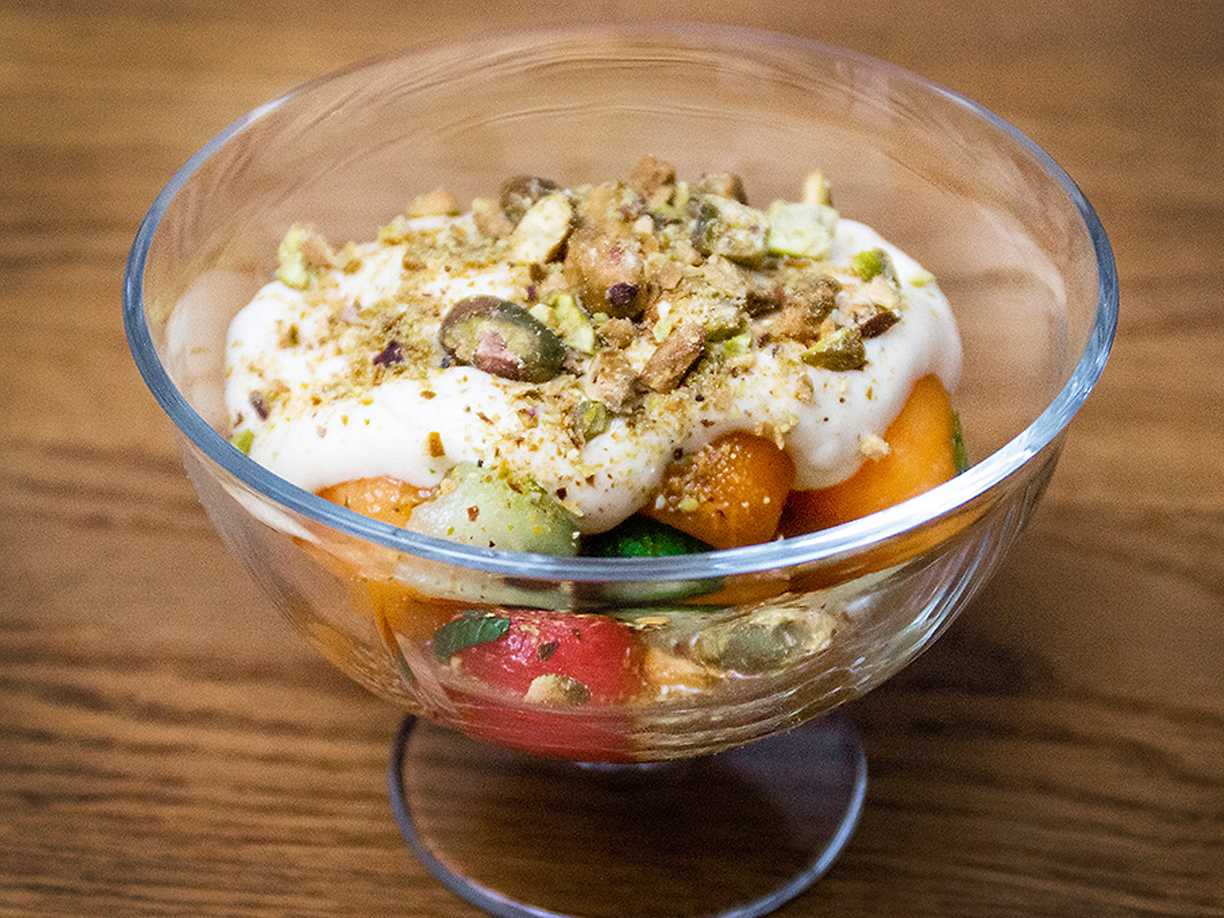 Bärfylld melon med mynta- och limedressing
