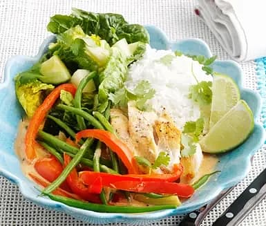 Grillad kycklinglårfilé med melonsallad och yoghurtsås