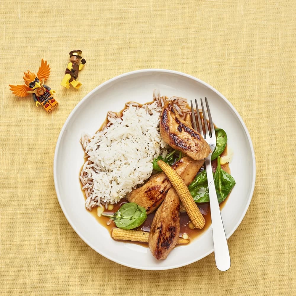 Kyckling teriyaki med ris och minimajs