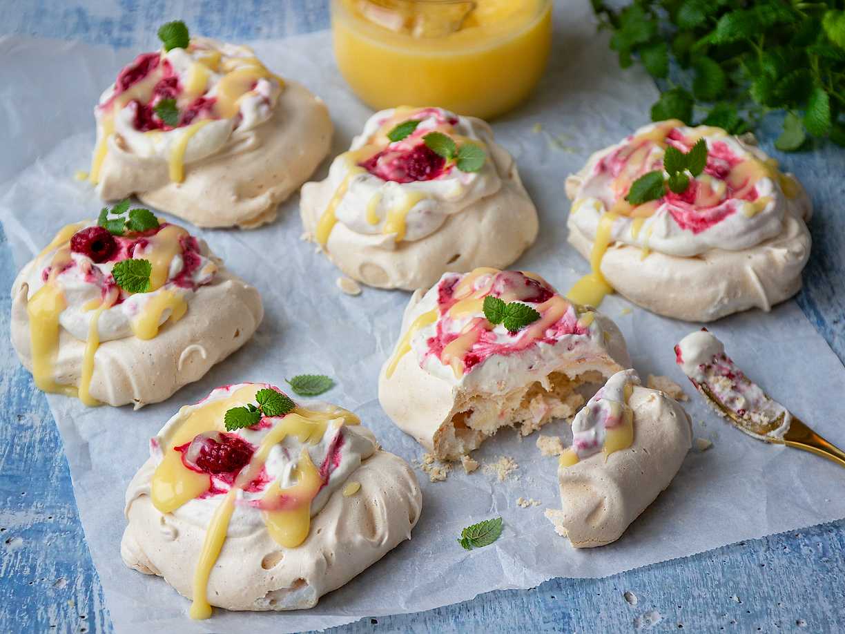Minipavlova med lemon curd