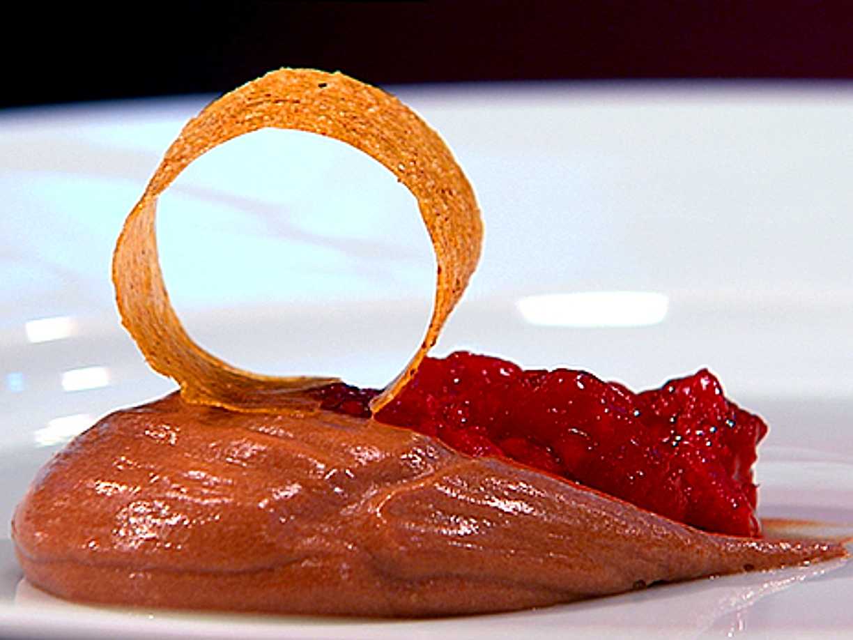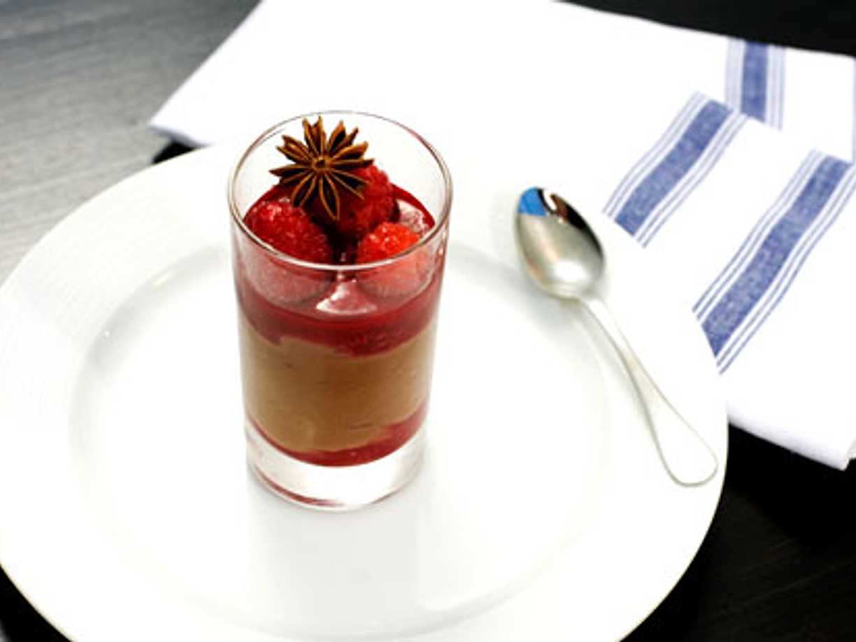 Mjölkchokladmousse med hallonsås