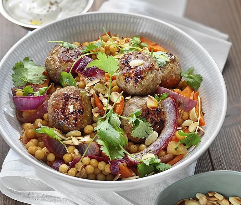 Köfte med morots- och mandelsallad