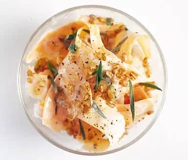 Apelsin- och basilikamarinerad morots- och zucchinipasta