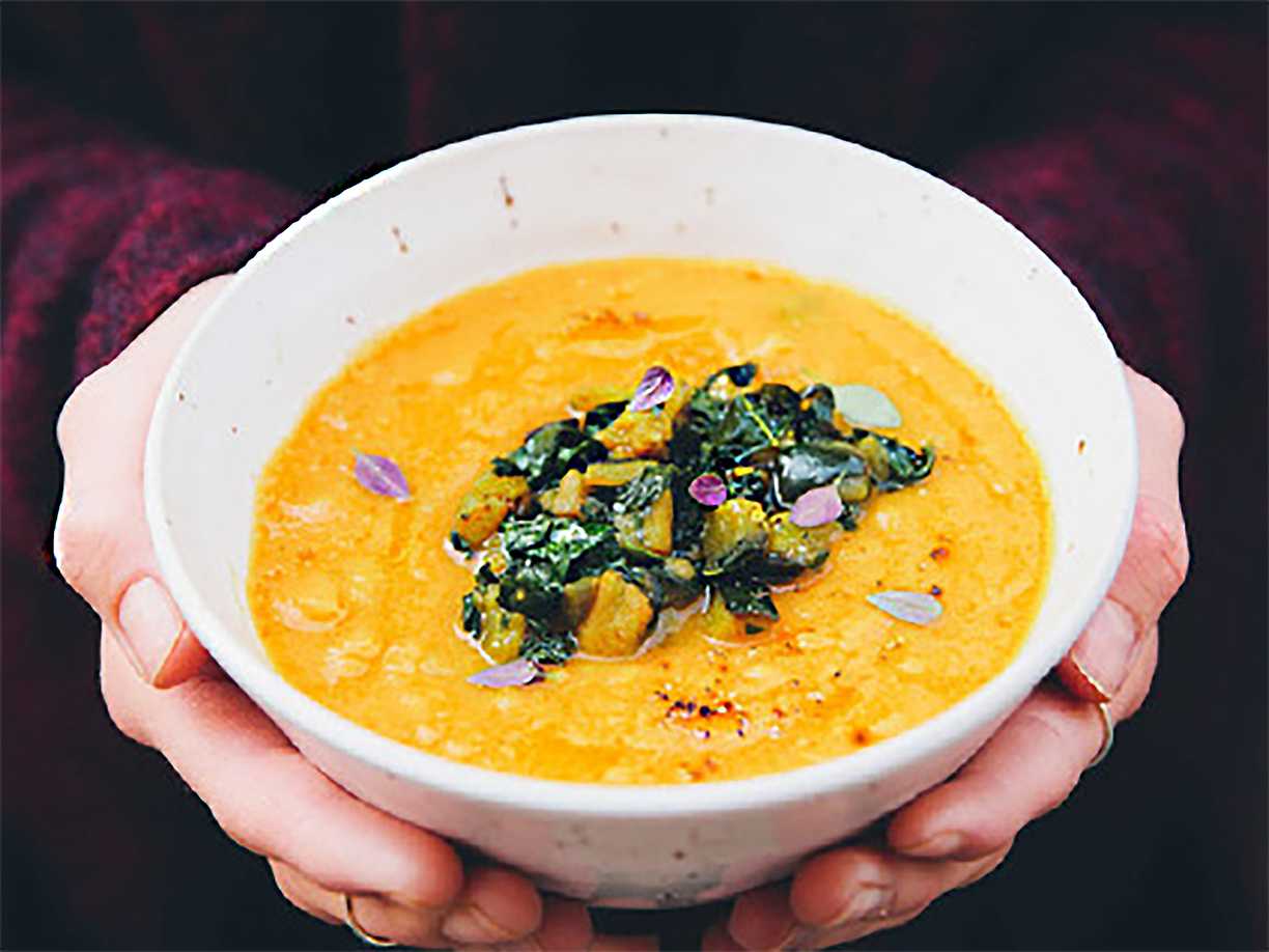 Morots- och ingefärssoppa med linser och tofu