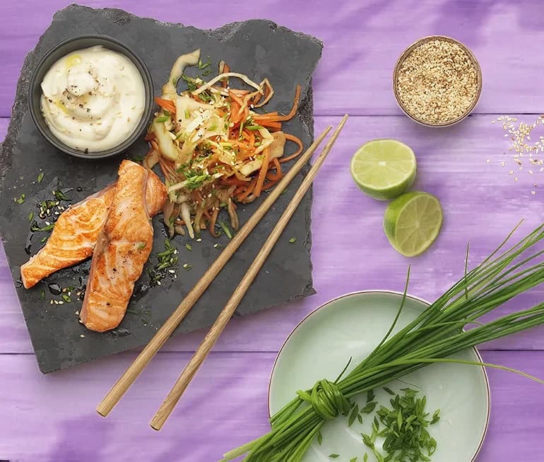 Asiatisk vitkål- och morotssallad med sesammajonnäs