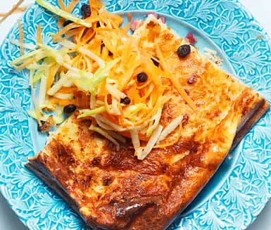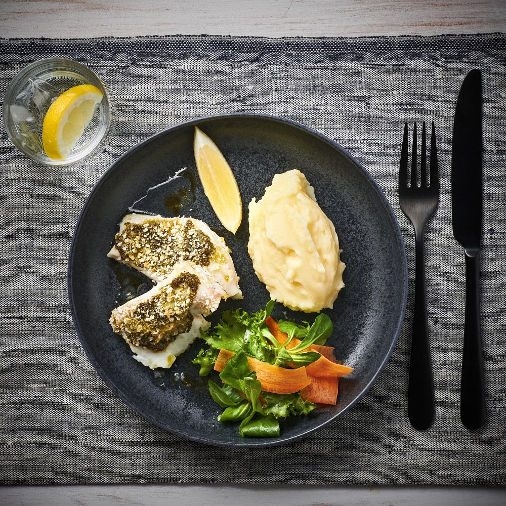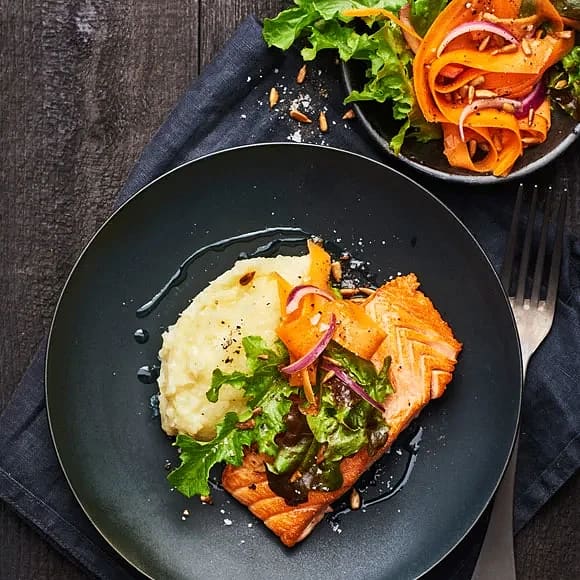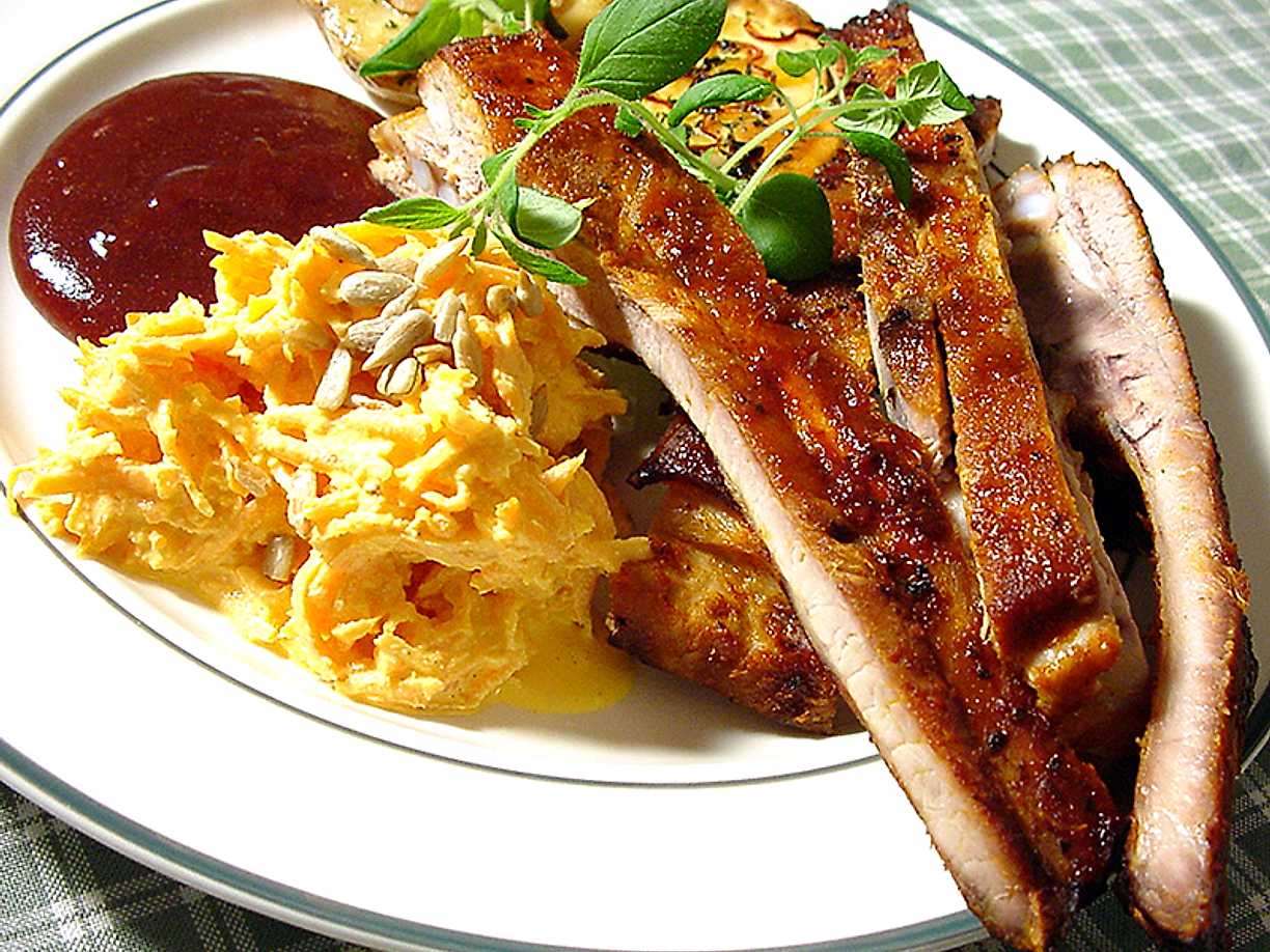 Storbiff med morotssallad i spiskummin- och citrondressing