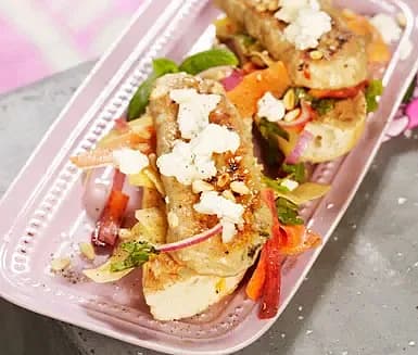 Gotländsk morotssallad med grillad kycklingfilé och fåroströra