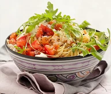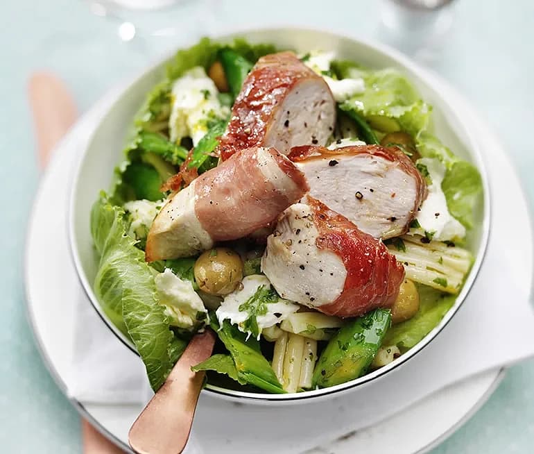 Gremolatapasta med mozzarella och kyckling med prosciutto
