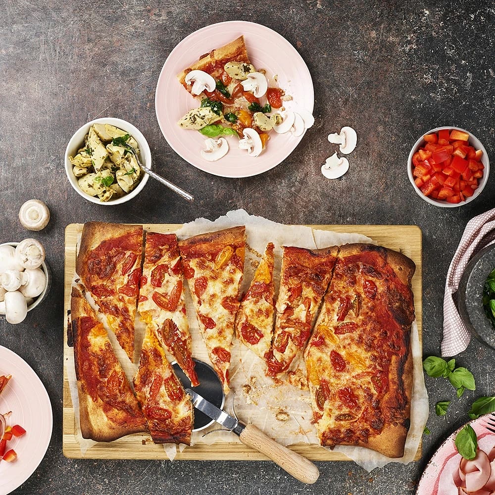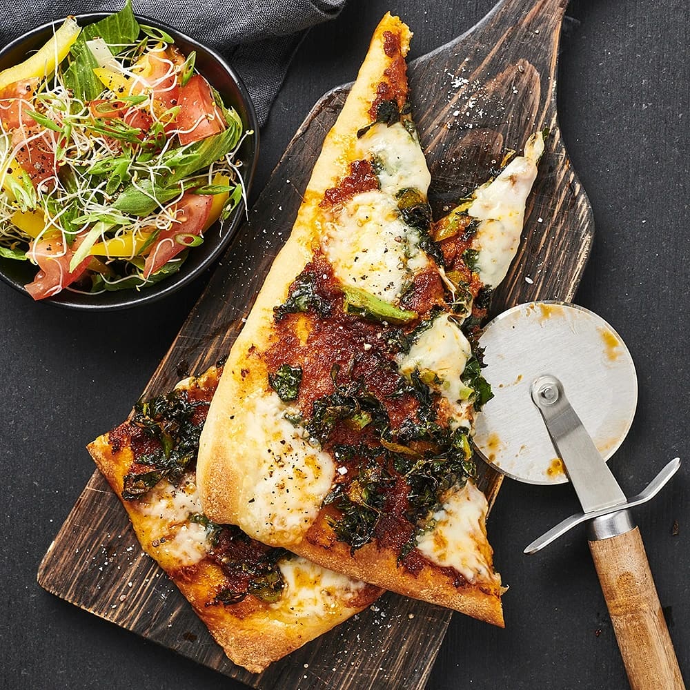 Tortillapizza med mozzarella, basilika och kronärtskocka