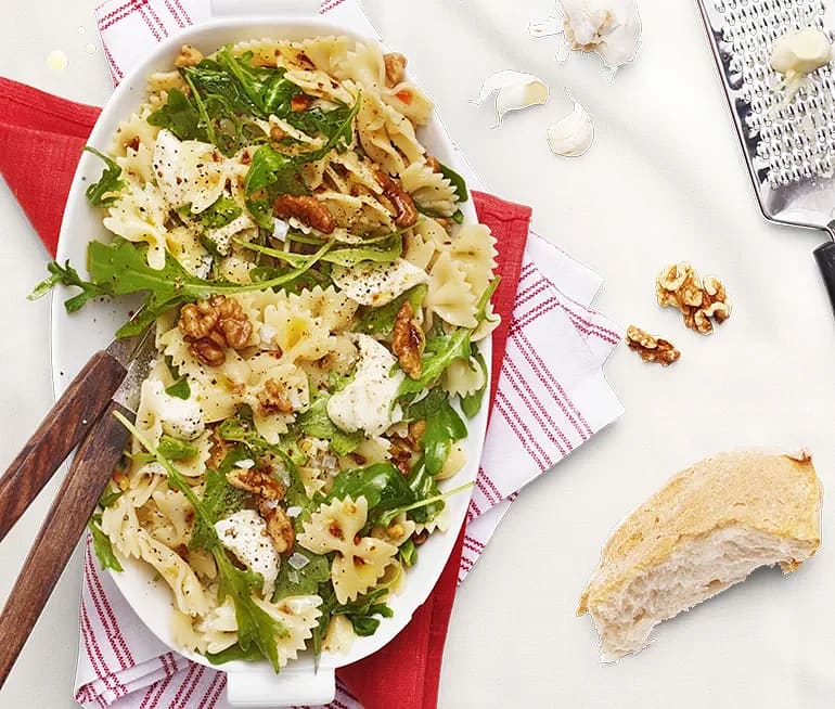 Pasta med kalkon, mozzarella och valnötter i tomatsås