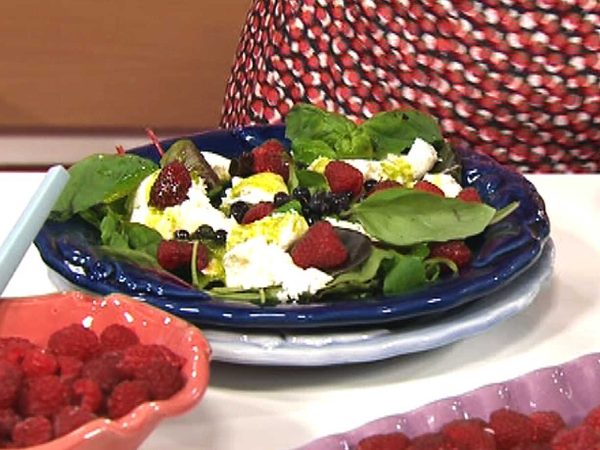 Mozzarellasallad med blåbär, hösthallon och basilika