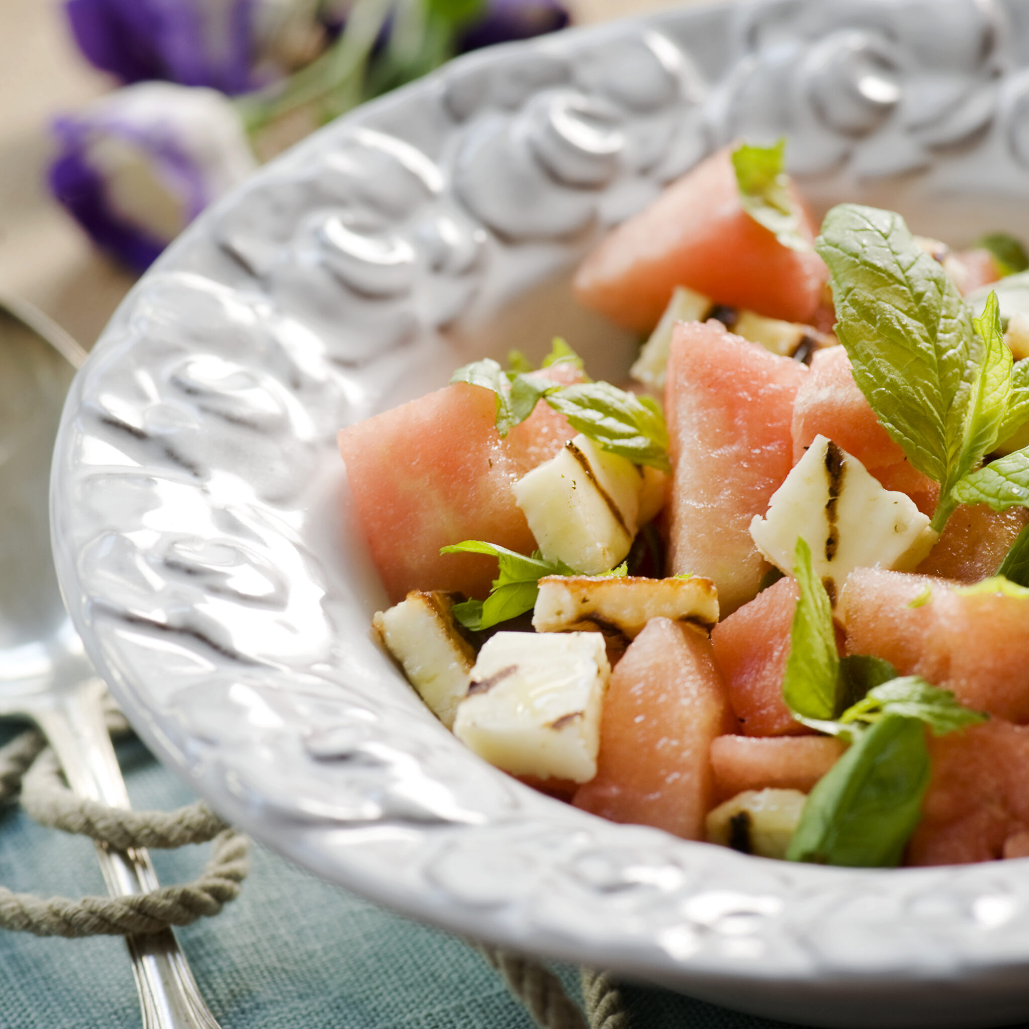 Sallad med vattenmelon, haloumi och mynta