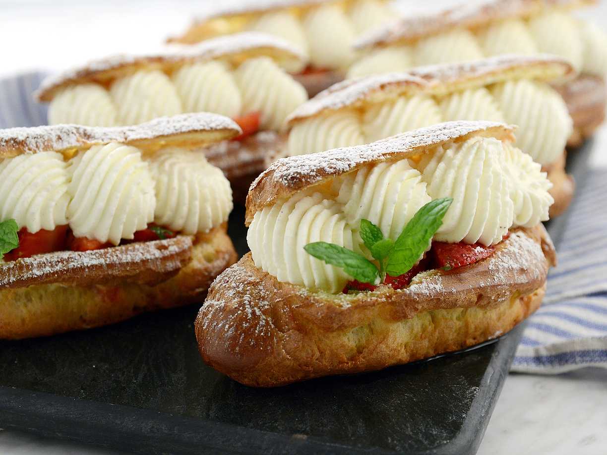 Éclairer med jordgubbskräm och mynta