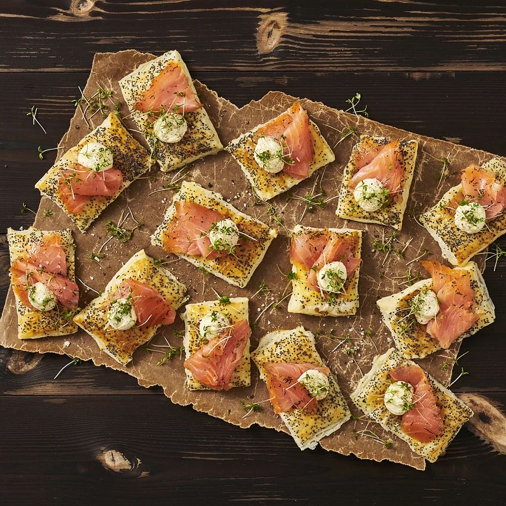 Smördegsflarn med najadlax och sveciakräm