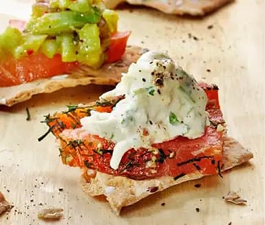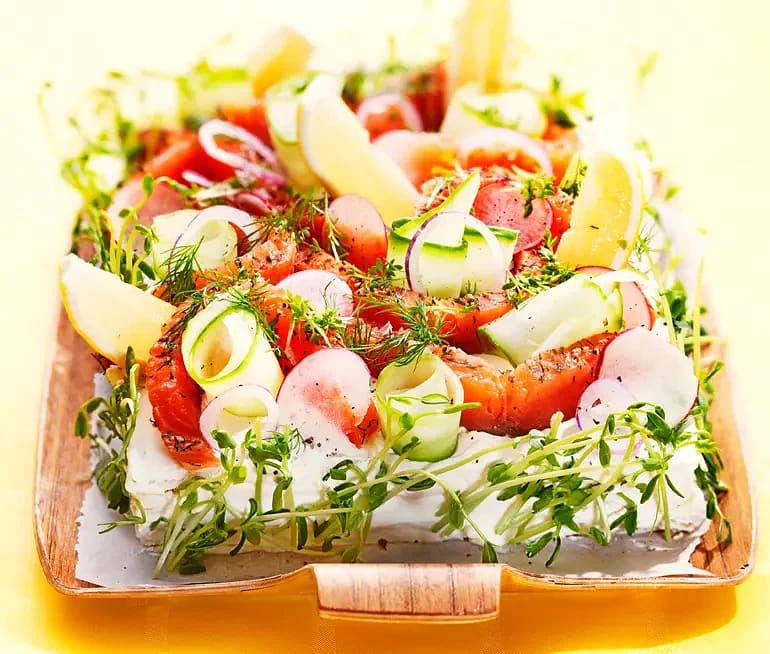 Smörgåstårta på tunnbröd med najadlax och räkor